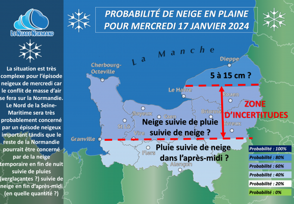 ❄️ Probabilité de neige en plaine en Normandie ce Mercredi 17 Janvier 2024 ❄️