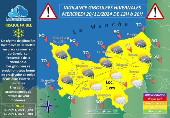 ❄️ALERTE METEO : GIBOULEES HIVERNALES CE MERCREDI 20/11/2024 SUR LA NORMANDIE❄️