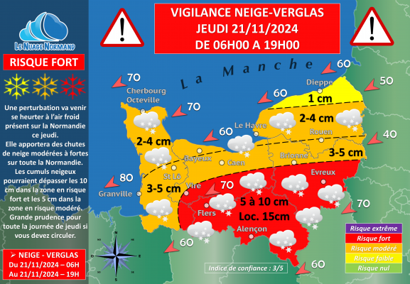 ❄️ALERTE NEIGE & VERGLAS CE JEUDI 21 NOVEMBRE 2024 SUR LA NORMANDIE❄️