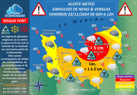 ❄️ALERTE METEO : GIBOULEES DE NEIGE & VERGLAS CE VENDREDI 22 NOVEMBRE 2024 EN NORMANDIE❄️