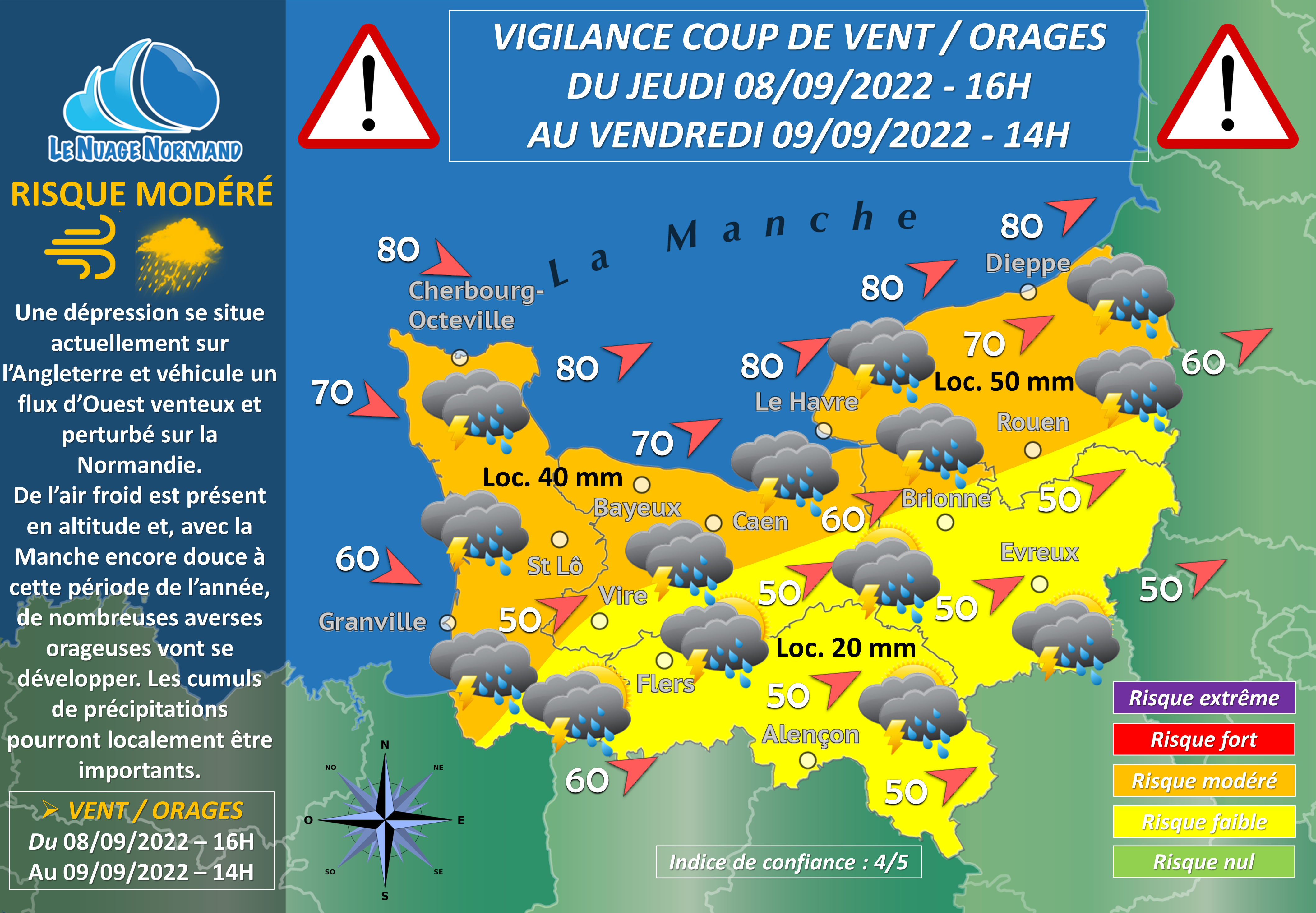 La partie Nord de la Normandie est la plus exposée à ce défilé d’averses et aux rafales de vent associées.
