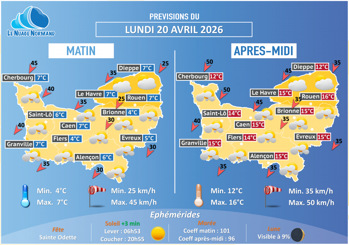 Demain après-midi, on conservera le même type de temps que le matin, avec de belles éclaircies sur la Seine-Maritime malgré quelques passages nuageux. Partout ailleurs, le ciel restera voilé sans gâcher l’impression de beau temps. Le vent de secteur nord-est soufflera entre 35 et 50 km/h. Les températures maximales varieront entre 12 et 16°C.