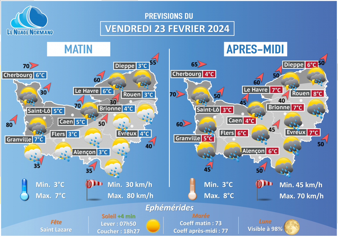 Le vent de secteur sud-ouest sera avec des rafales allant de 30 à 80 km/h (Fortes rafales possibles sous les averses).