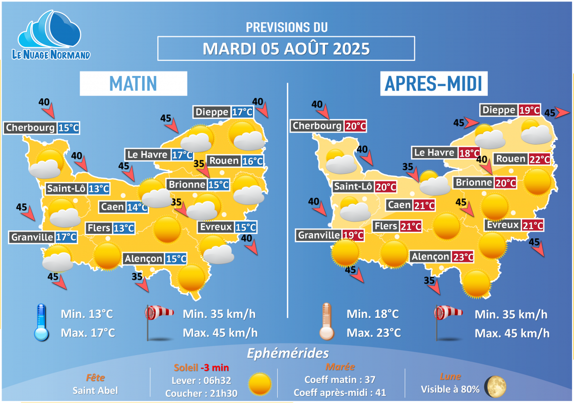 Posté dans METEO J+1,Les News  |  Tagged demain,J+1,Le Nuage Normand,LNN,Météo,normandie,quotidienne