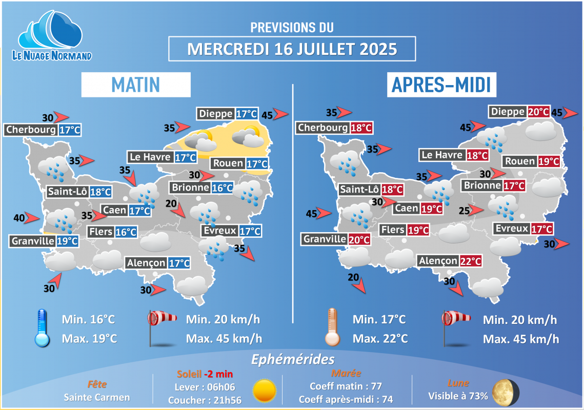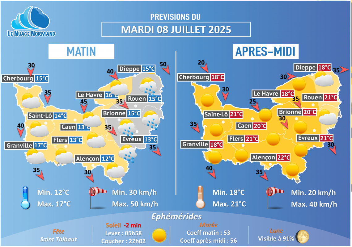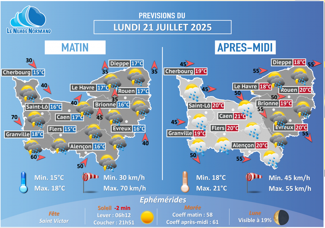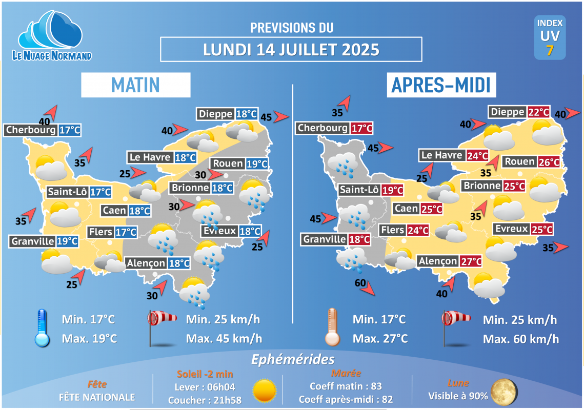 Posté dans METEO J+1,Les News  |  Tagged demain,J+1,Le Nuage Normand,LNN,Météo,normandie,quotidienne