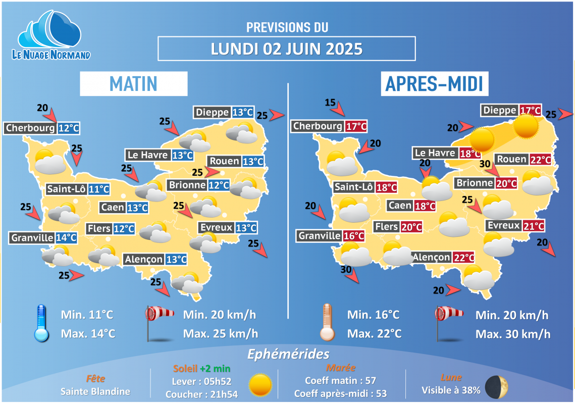 Posté dans METEO J+1,A propos de nous,Les News  |  Tagged demain,J+1,Le Nuage Normand,LNN,Météo,normandie,quotidienne